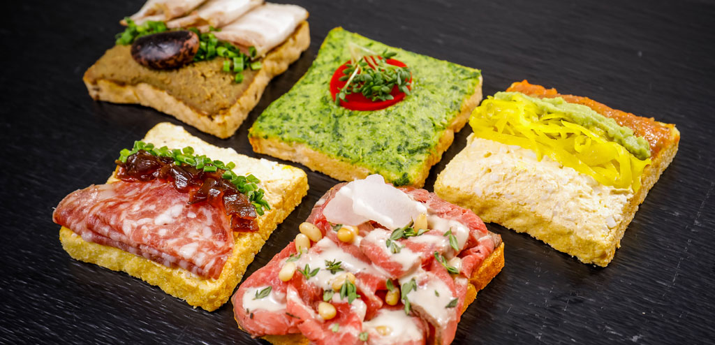 Mundgerecht: Unser Häppchen-Repertoire reicht von abwechslungsreich belegten Canapées und Landbrotstreifen über klassisch italienische Tramezzini und Panini bis hin zu immer frischen Tortilla Wraps.